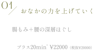 おなかホットストーン / 腸もみ / 肩首の癒着はがし